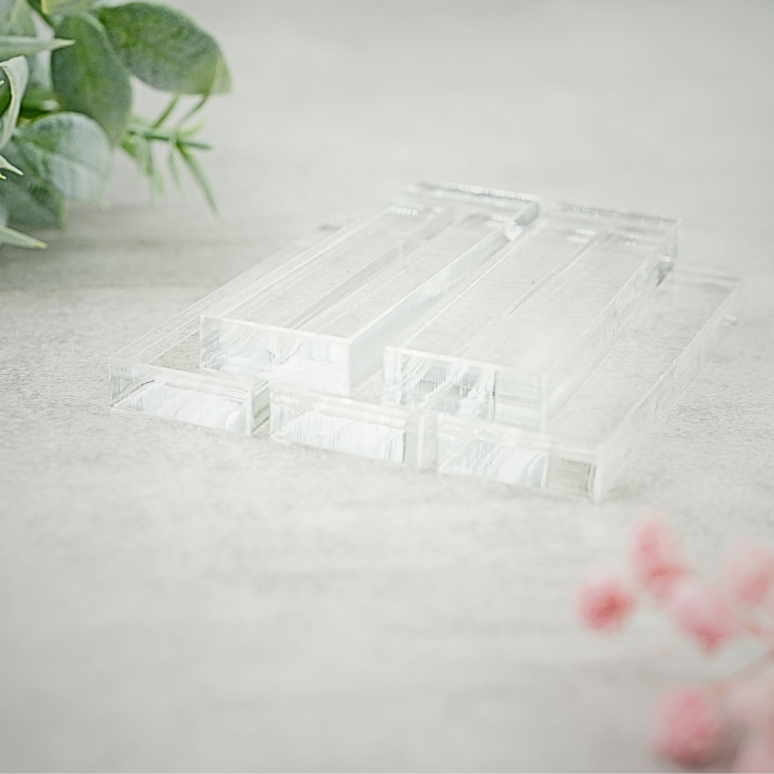 Dieses 5er-Set Acryl-Klötzchen (halbes Klötzchen) 8cm x 22cm x 0,8 cm in glasklarer Ausführung ist das Highlight für deine nächsten Kreativ-Ideen. Durch die hochglänzende, transparente Oberfläche wirken die Klötzchen wie edles Glas – ein zeitloser Look, der durch seine Klarheit und Tiefenwirkung besticht.