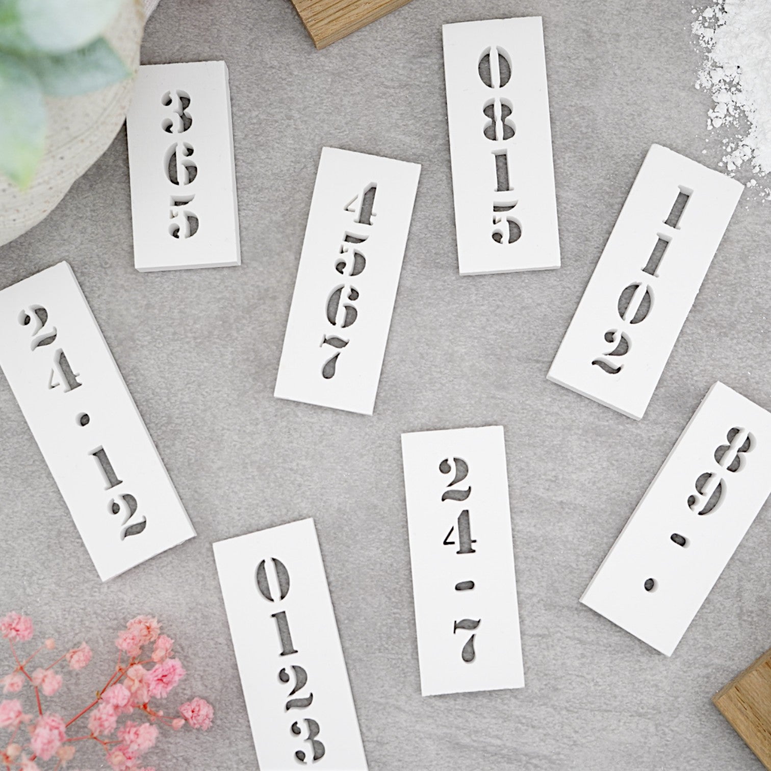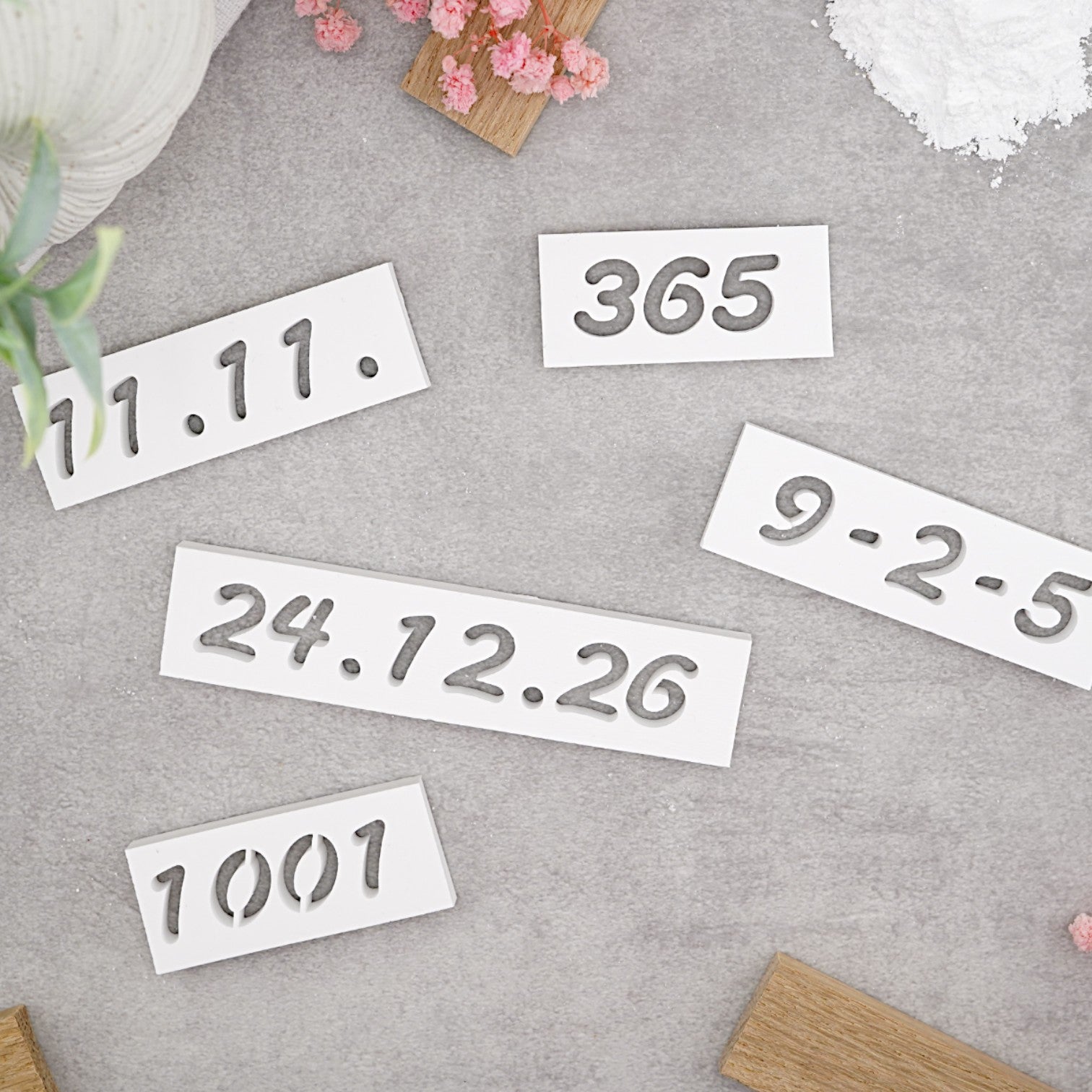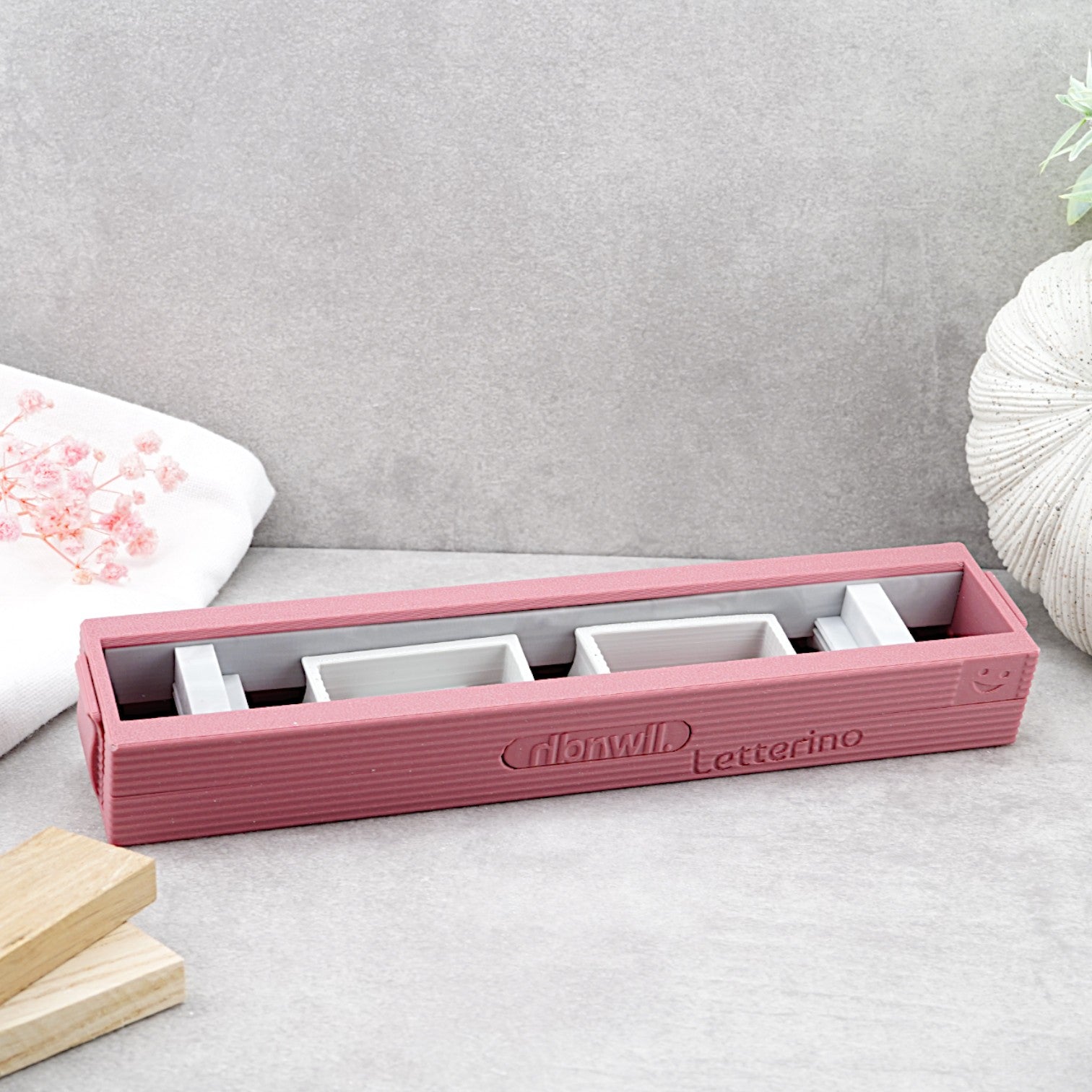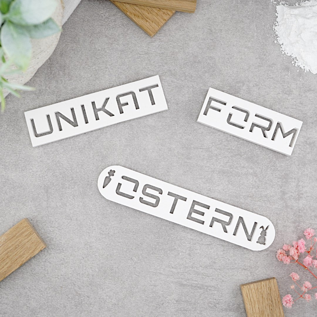 Enthält mindestens 4 Letter einer Schriftart, 1 MoldBOX sowie nach Verfügbarkeit zusätzliche Elemente wie Leerzeichen, Endsteine oder einen LetterSAFE.